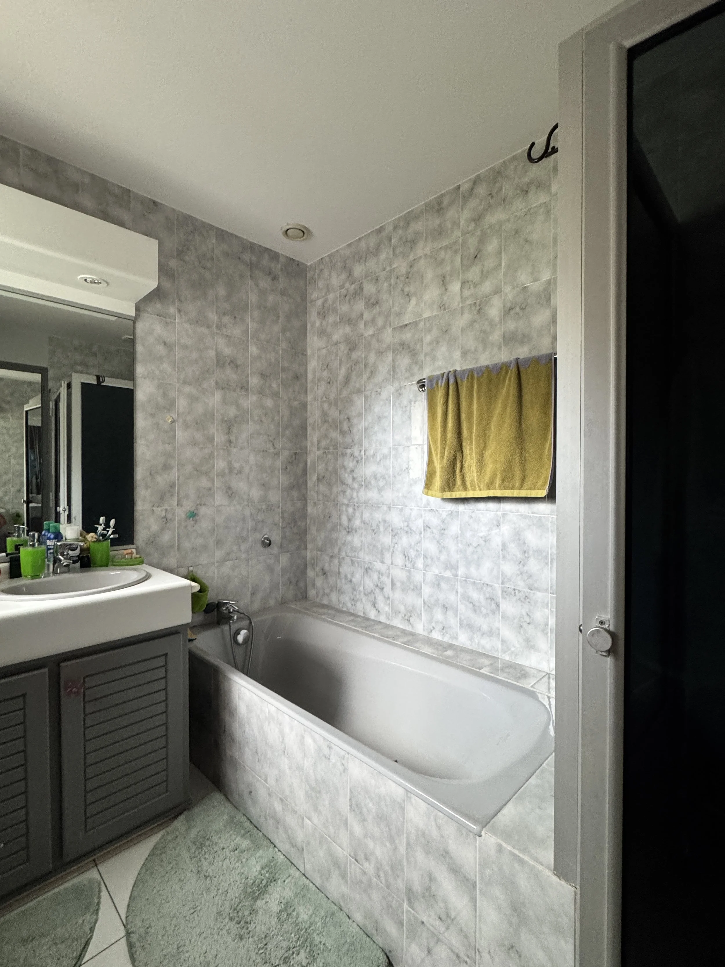 Comme souvent dans les maisons de cette génération (fin 80s), les menuiseries extérieures, les revêtements de sol et de mur, l’isolation, le style,… demandent aujourd’hui à être rénovés. Le projet représente donc une belle opportunité de d’améliorer la cohérence entre les espaces dedans/dehors et d’intégrer des solutions plus fonctionnelles.