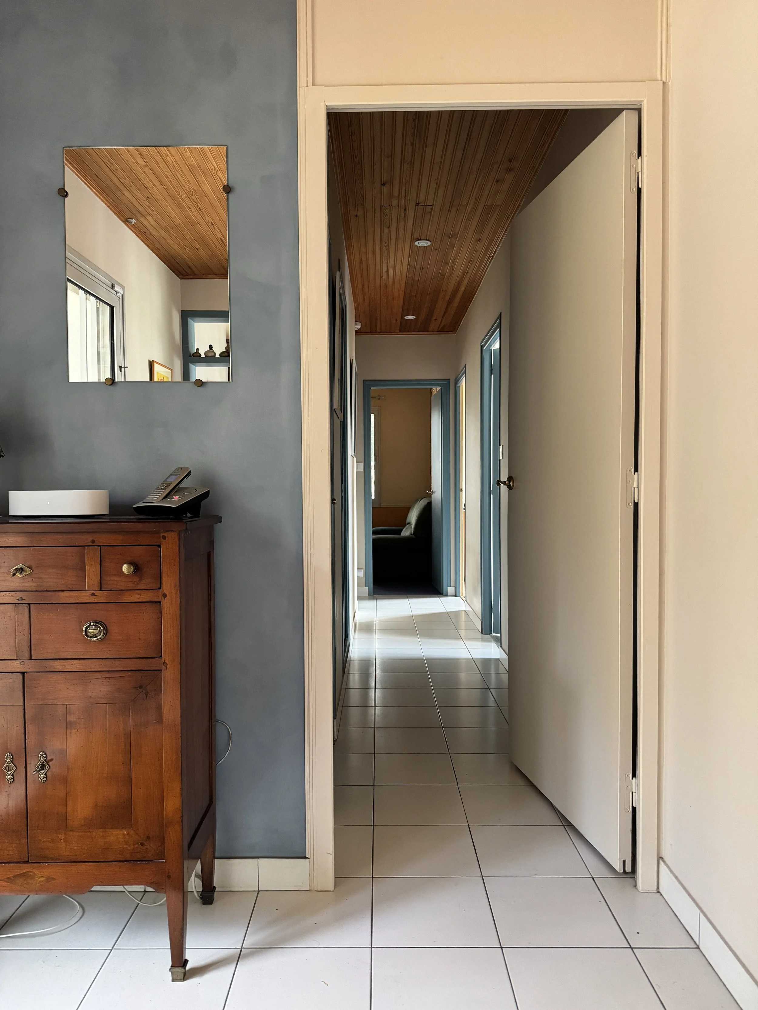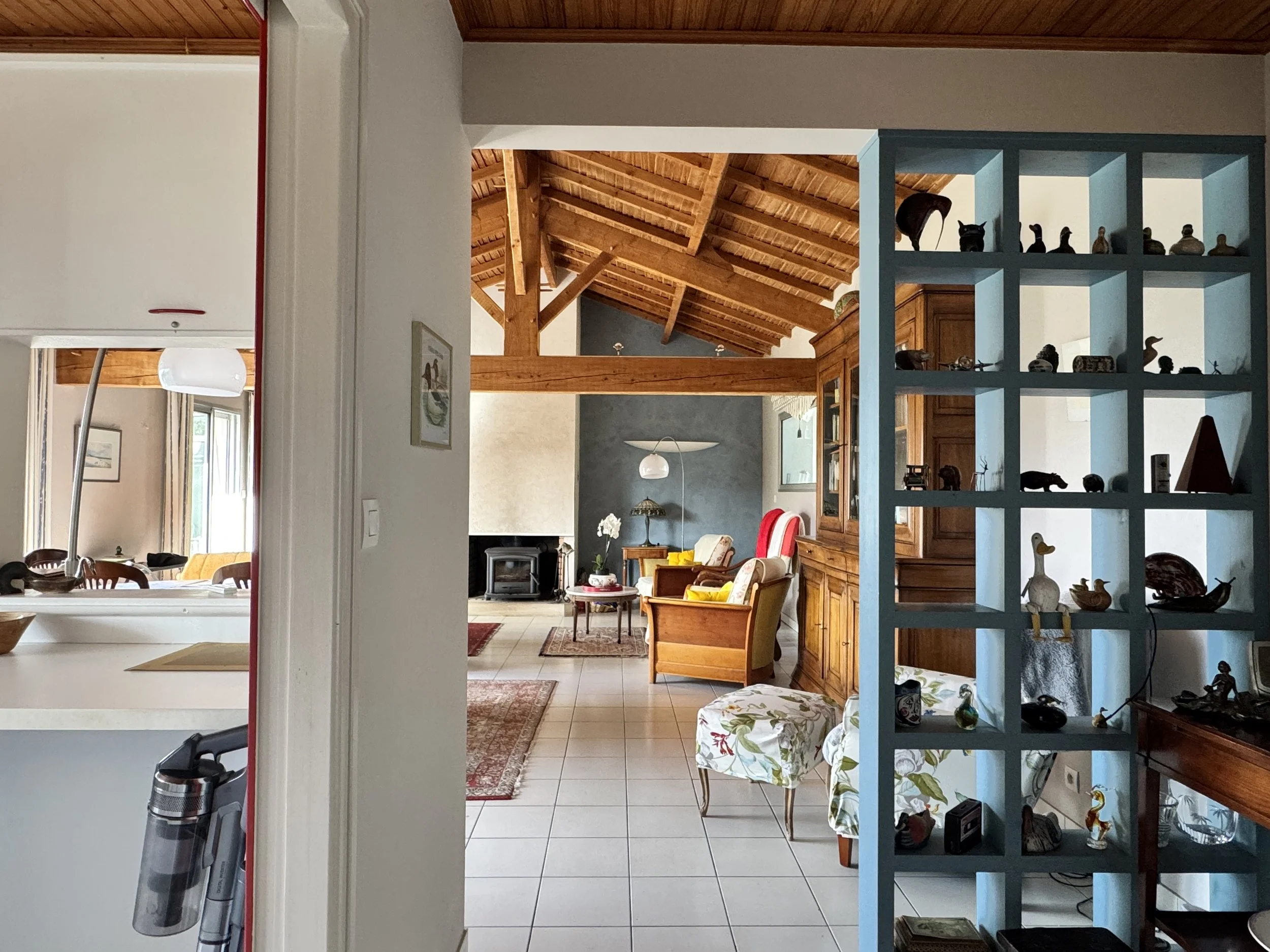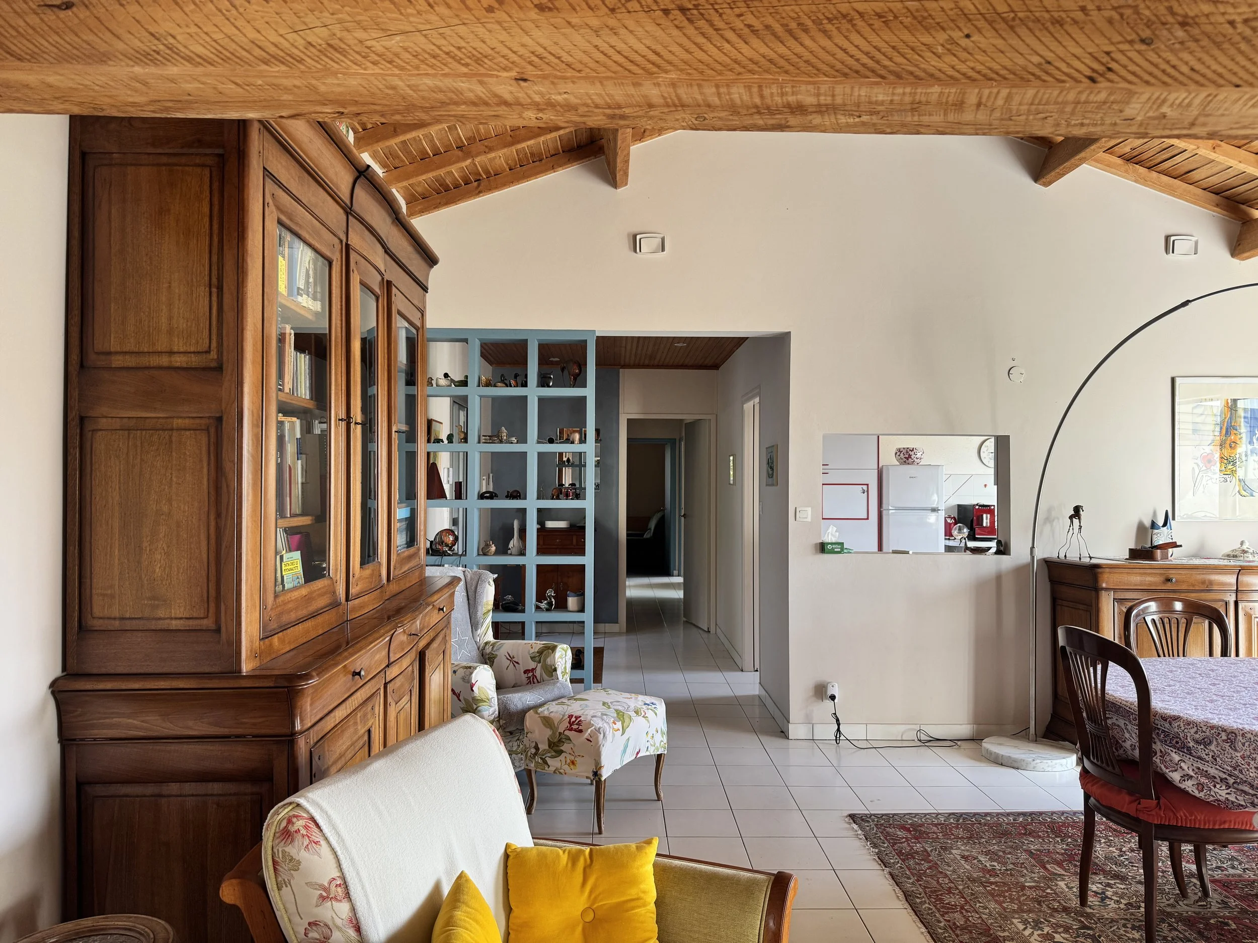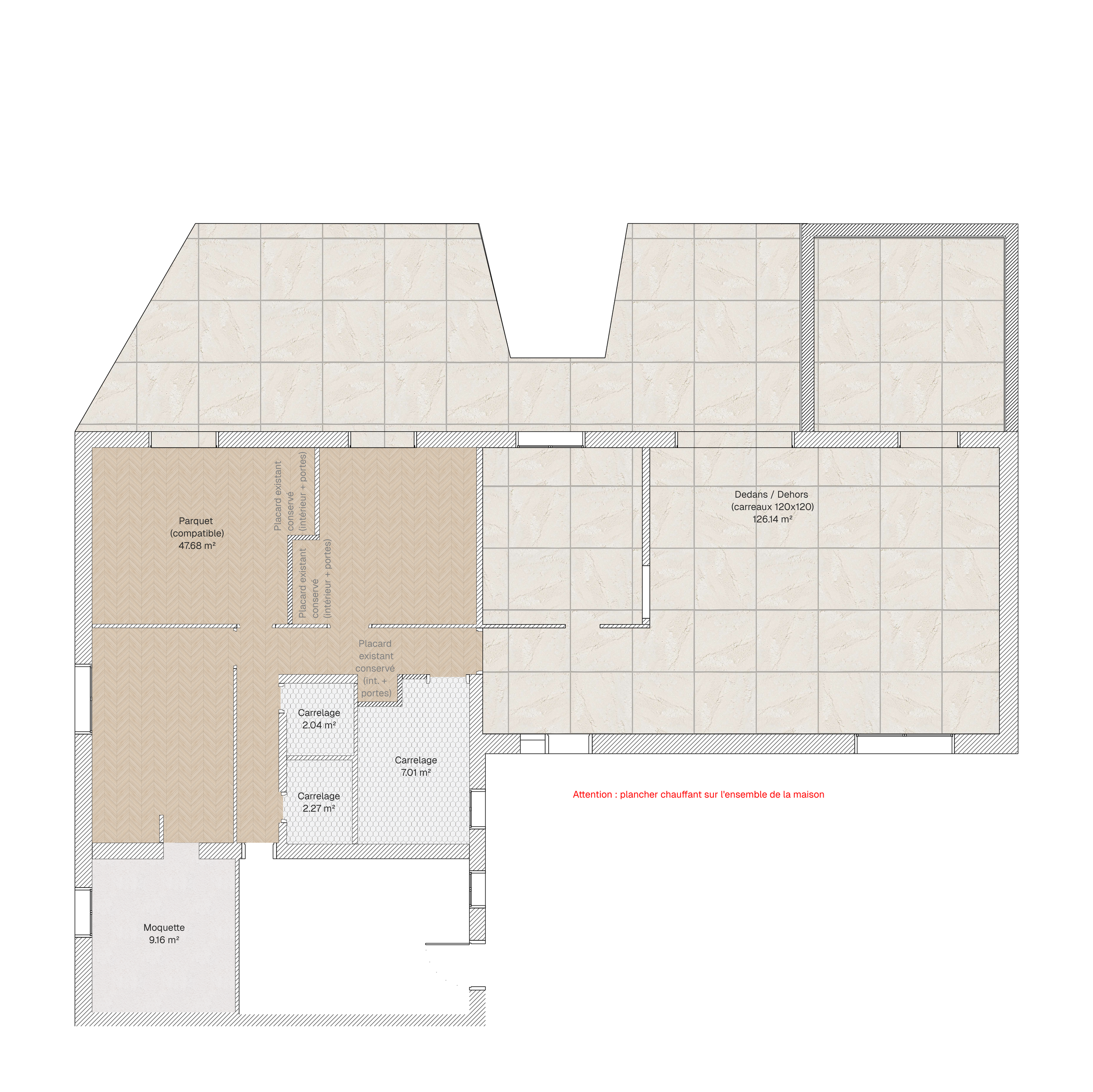 L’enjeu principal de cette rénovation est de créer un intérieur plus performant, plus confortable, plus ergonomique, plus esthétique, tout en conservant l’esprit de la maison : la nature environnante, le plafond bois dans la pièce de vie, et la distribution de (presque toutes) les pièces.