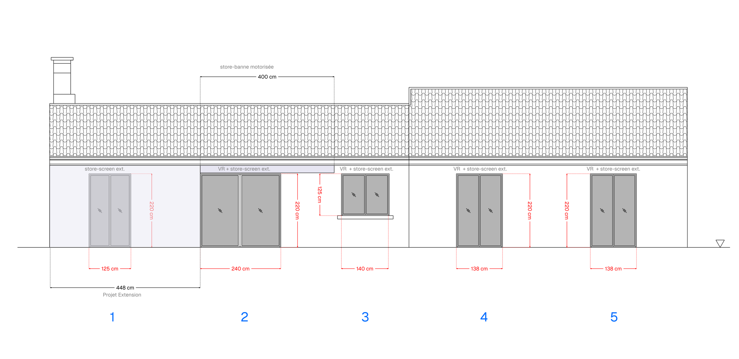 avant été 2026 : Remplacement de toutes les menuiseries extérieures et des volets roulants, du store-banne, et ajout de stores-screen (dans le coffre des volets roulants, sur la façade Sud). Rénovation de la terrasse (et de ses fondations).