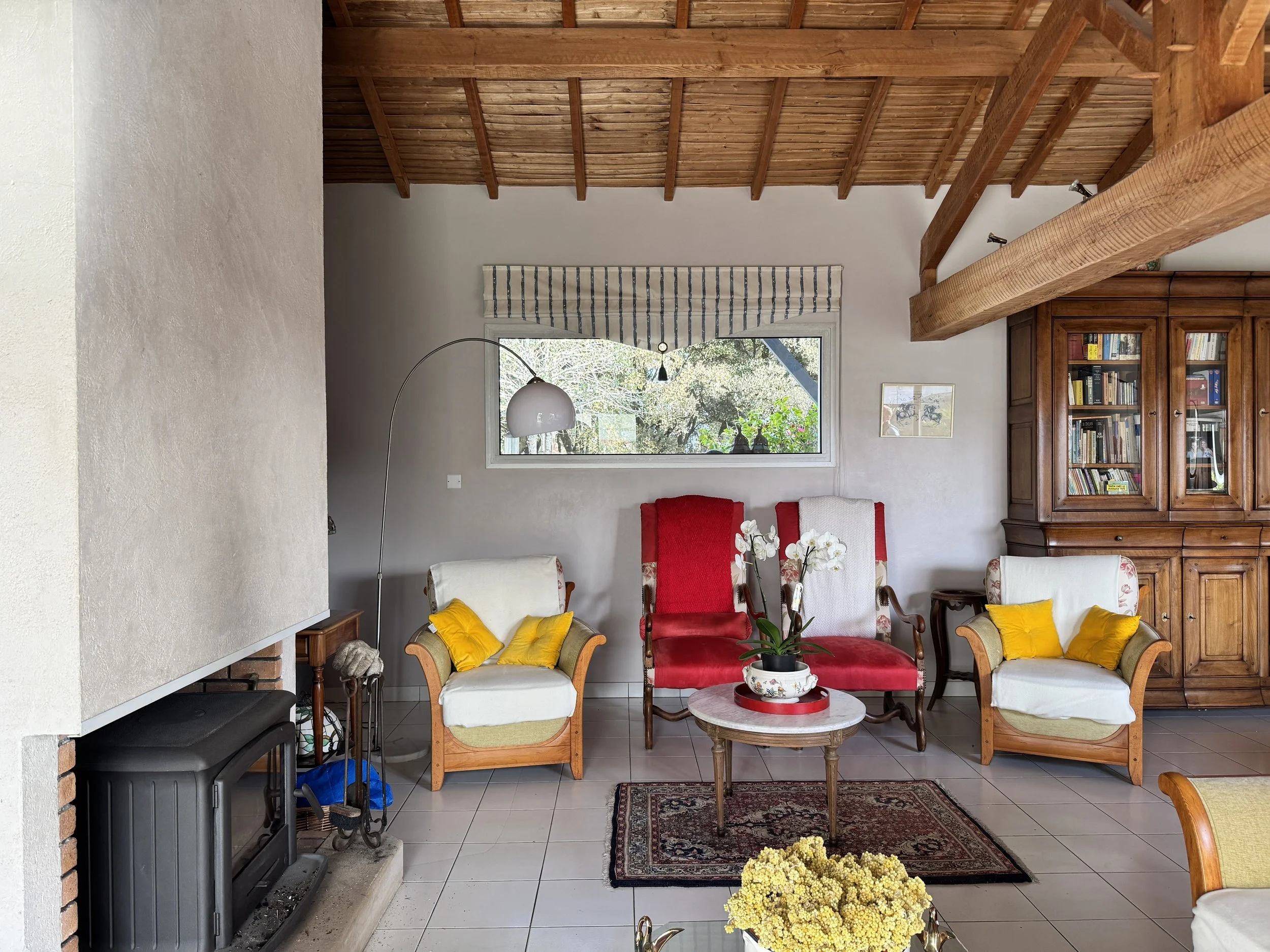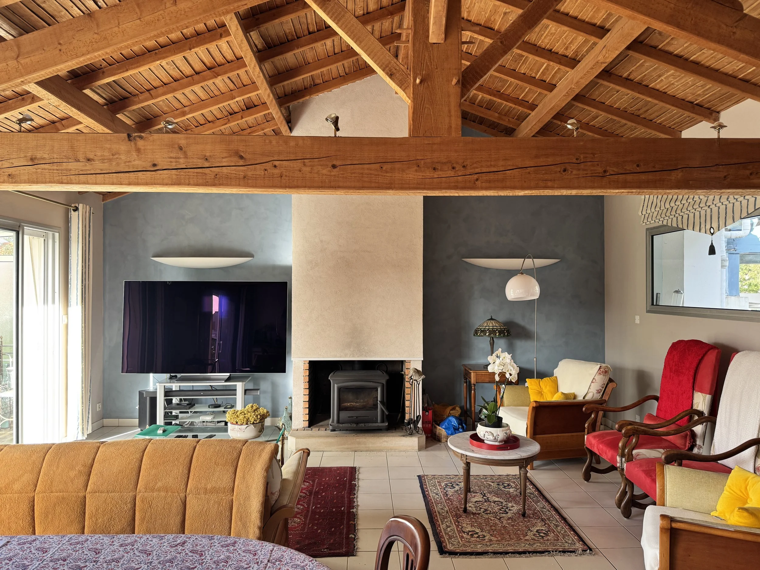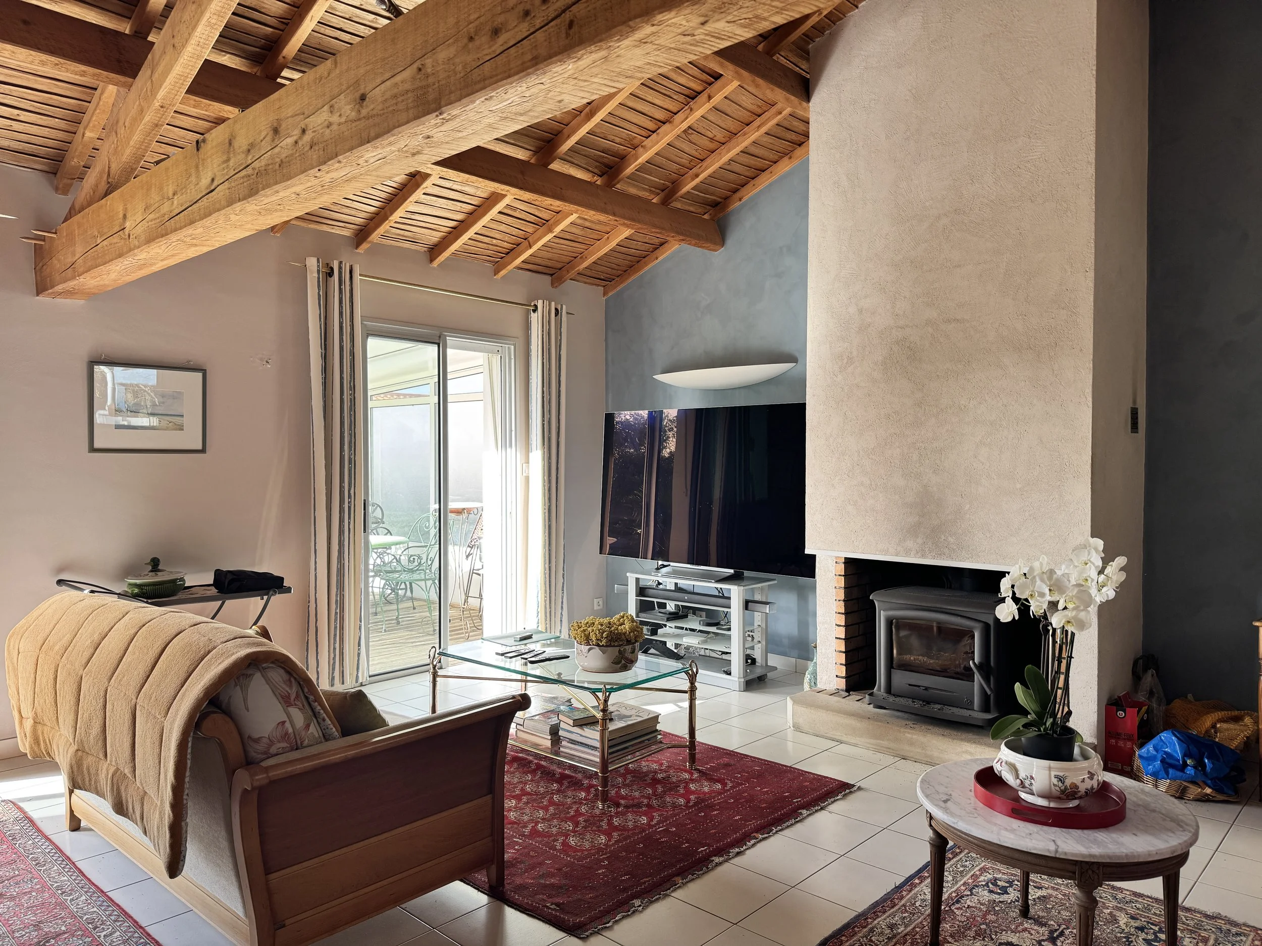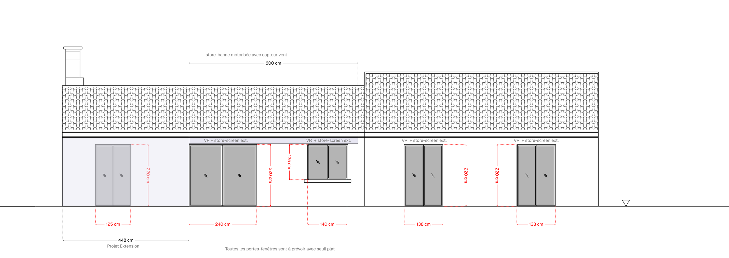 avant été 2026 : Remplacement de toutes les menuiseries extérieures et des volets roulants, du store-banne, et ajout de stores-screen (dans le coffre des volets roulants, sur la façade Sud). Préparations.